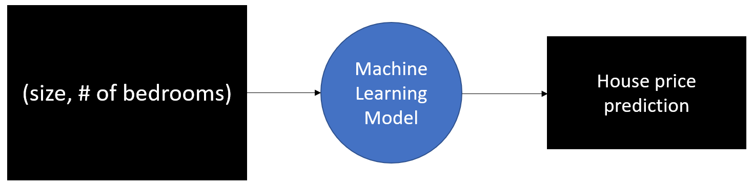 Let's say we want to build a machine learning model to predict house prices. We have data on a bunch of other houses such as their associated house price along with properties of the house such as its size and number of bedrooms.